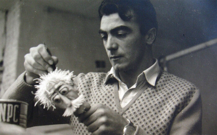 Con la creta, Carlo inizia a modellare i primi personaggi, che poi porta in “scena” in vari spettacoli di burattini per la gioia dei suoi compagni di gioco.